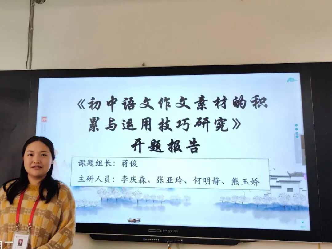 2026届语文组教师张亚玲作《初中语文作文素材的积累与运用技巧研究》开题报告。