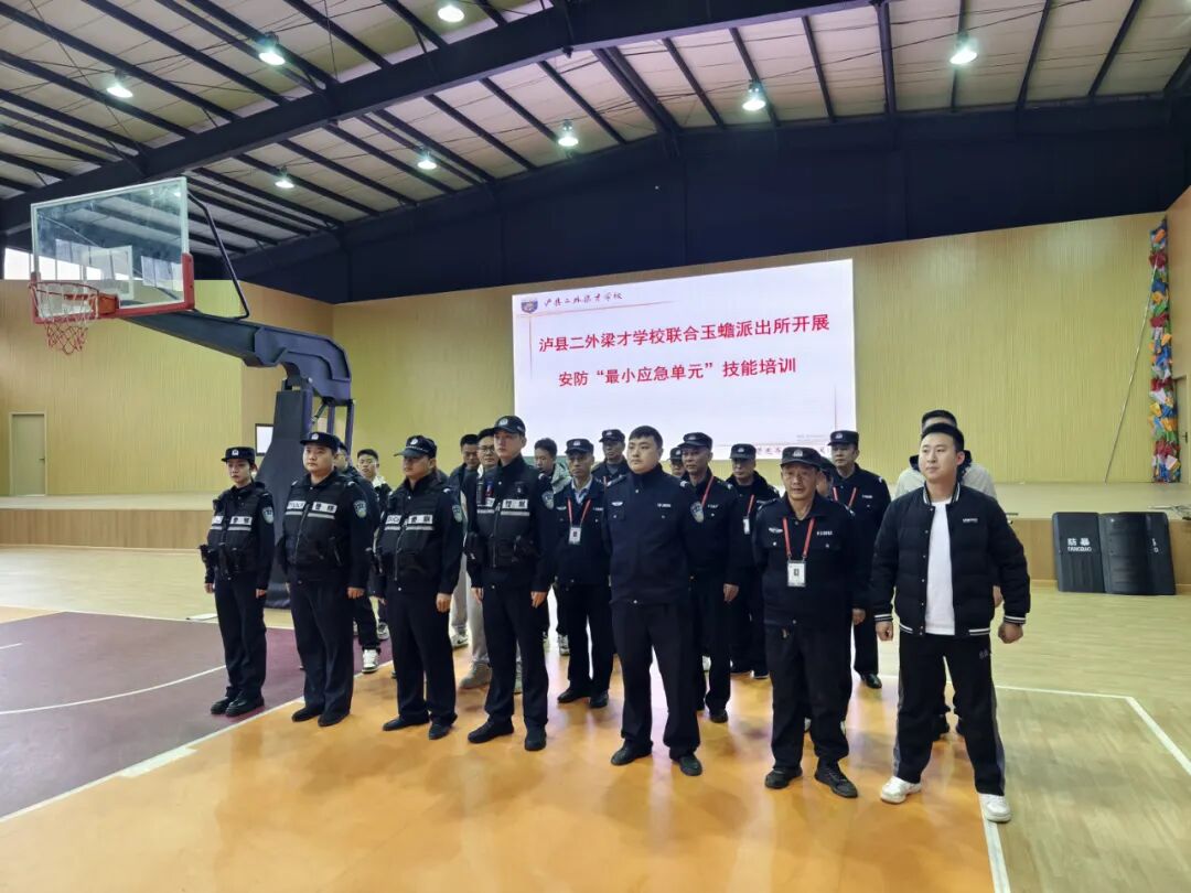 近日,泸二外联合泸县玉蟾派出所开展“最小应急单元”安防技能培训和防暴应急演练,旨在提升学校安保队伍的应急处置能力和防暴技能水平,确保在紧急情况下能够迅速、有效地应对各种安全威胁。