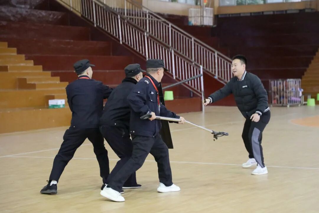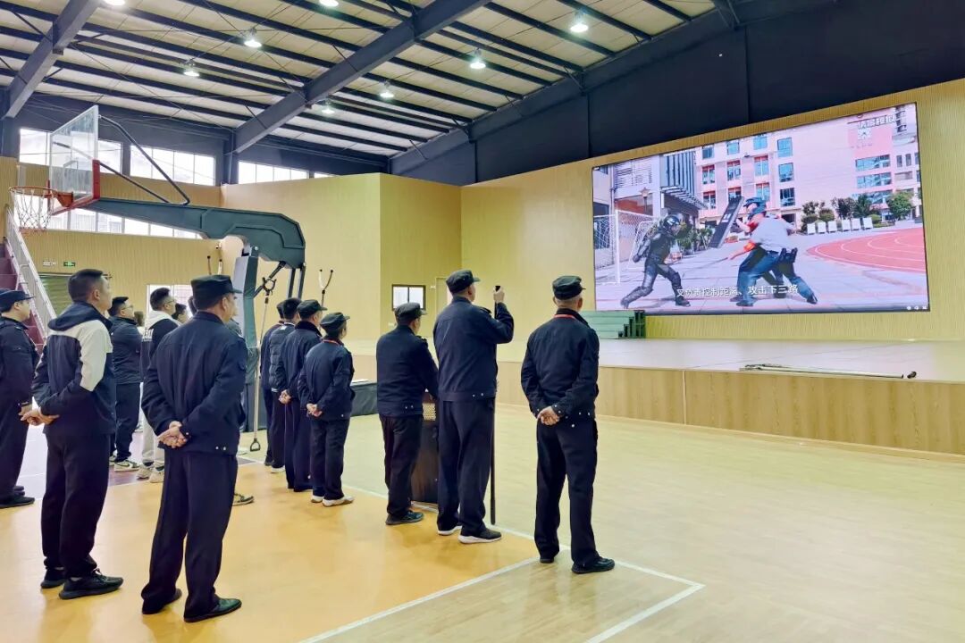 安保技能培训涵盖了多个方面,包括防暴器械的正确使用、巡逻技巧、应急救援等。玉蟾派出所民警通过现场示范和实际操作,让安保和应急小分队队员们更加熟练地掌握了各种防暴技能。现场还观看了《校园暴恐事件处置流程》教学视频。