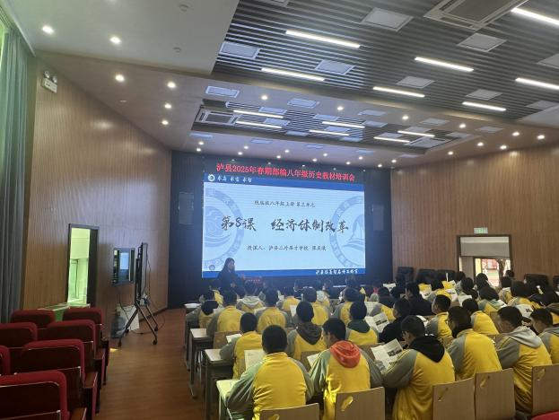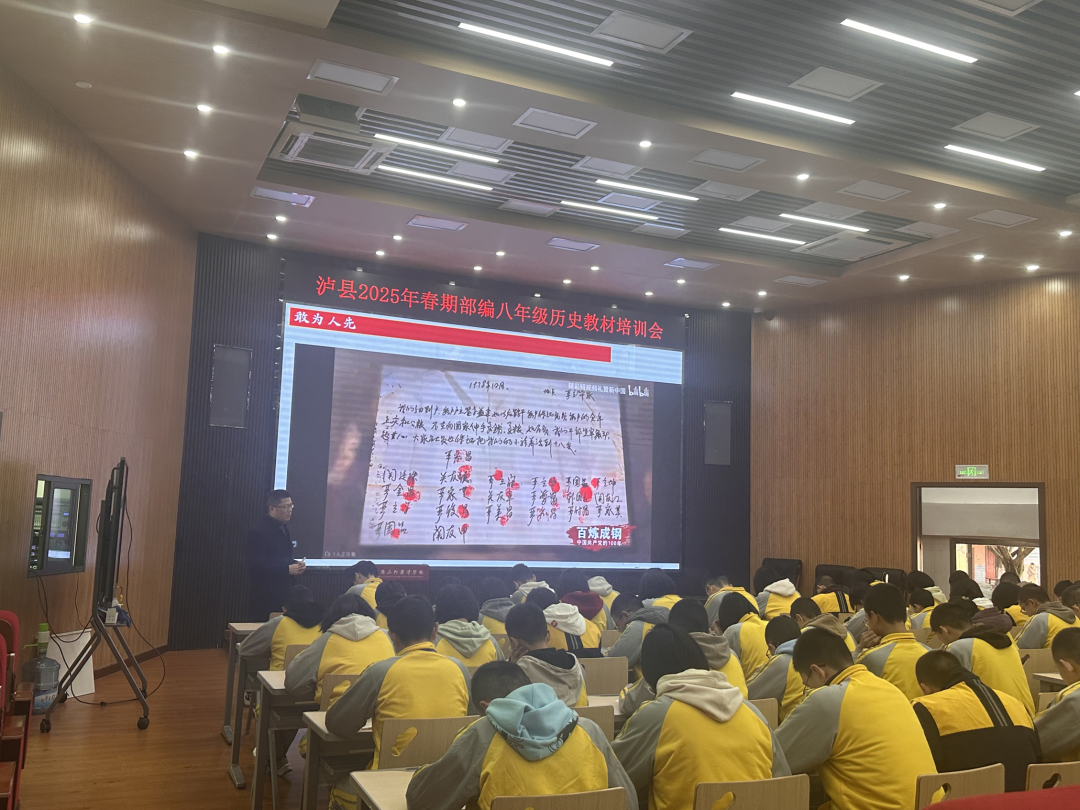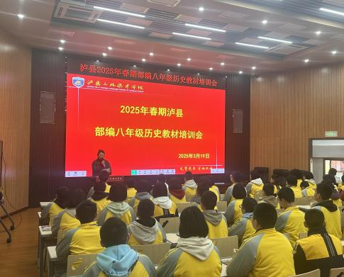 3月19日,2025年春期泸县部编八年级历史教材培训会在泸二外举行。会议由泸二外教师徐映湖主持,泸县教师进修学校历史教研员游翔及全县八年级历史老师参加培训。