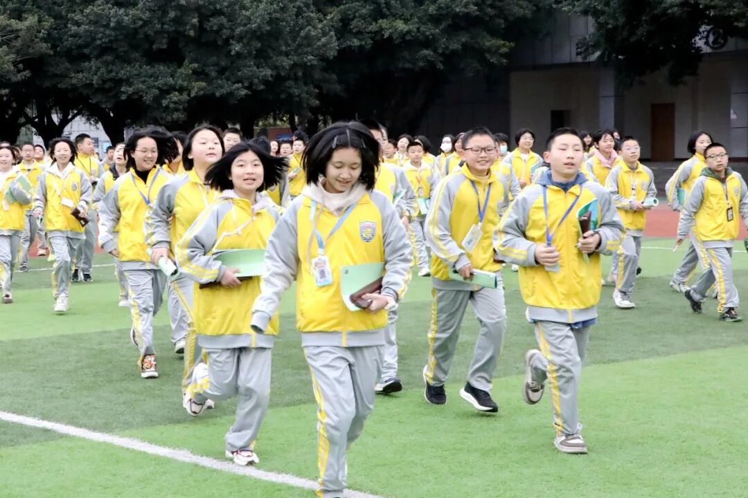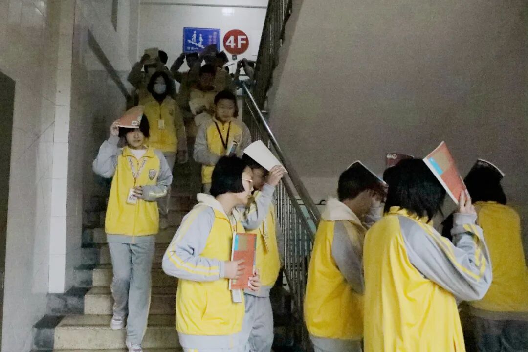 疏散警报声再次响起时,各班老师有条不紊地组织学生开始撤离教室,沿着楼梯快速且有序地朝着操场安全区域疏散。短短几分钟全部安全集结到操场的指定位置。