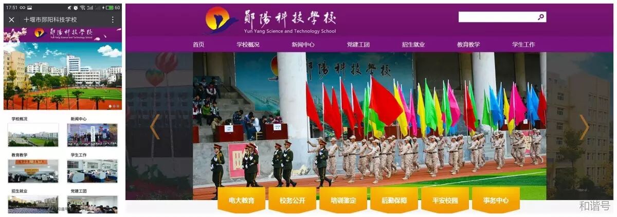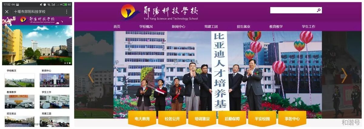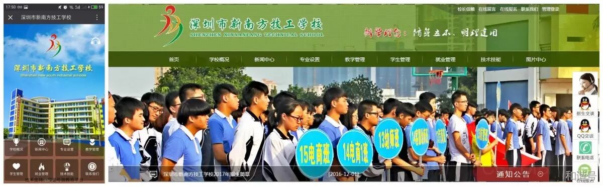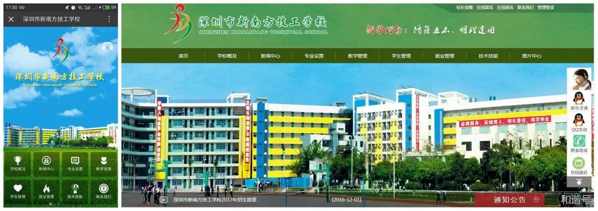本周上线的微官网分别是十堰市郧阳科技学校和深圳市新南方技工学校,这两个学校都是职业技术学校。为了塑造学校品牌,提高学校影响力,吸引生源,它们在和谐号微教育平台搭建了三网合一。