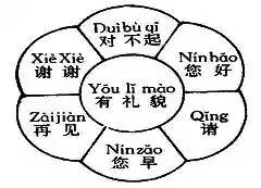 以某一知识点为辐射源,向四面八方散射开去的板书形式。如在教小学一年级思想品德课《冬冬有礼貌》时,教师采用右面板书可把冬冬的礼貌用语全面地展现出来。