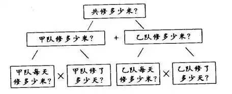 如有一道数学应用题。两个筑路队修一条公路,甲队每天修650米,乙队每天修520米,两队合修18天,共修多少米?设计以下板书,就可以使学生很快地掌握解题过程。