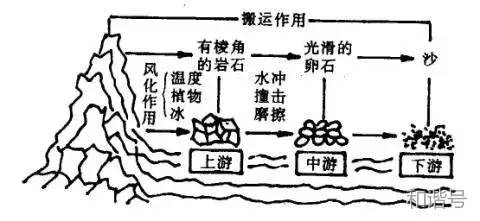 用简笔画描摹事物的形状并配以文字说明的板书形式。这实际上就是平常所说的简笔画。这种板书运用得好,可增强课堂教学的形象直观效果,调动学生的学习积极性。如讲解《卵石是怎样形成的》一课时,教师通过以下板书可把卵石形成的过程形象地展现在学生面前。