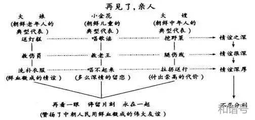 根据教学内容边分析边阐述的板书形式。如讲解《再见了,亲人》一课时,教师可设计以下板书,一边写,一边完成课文的分析任务。