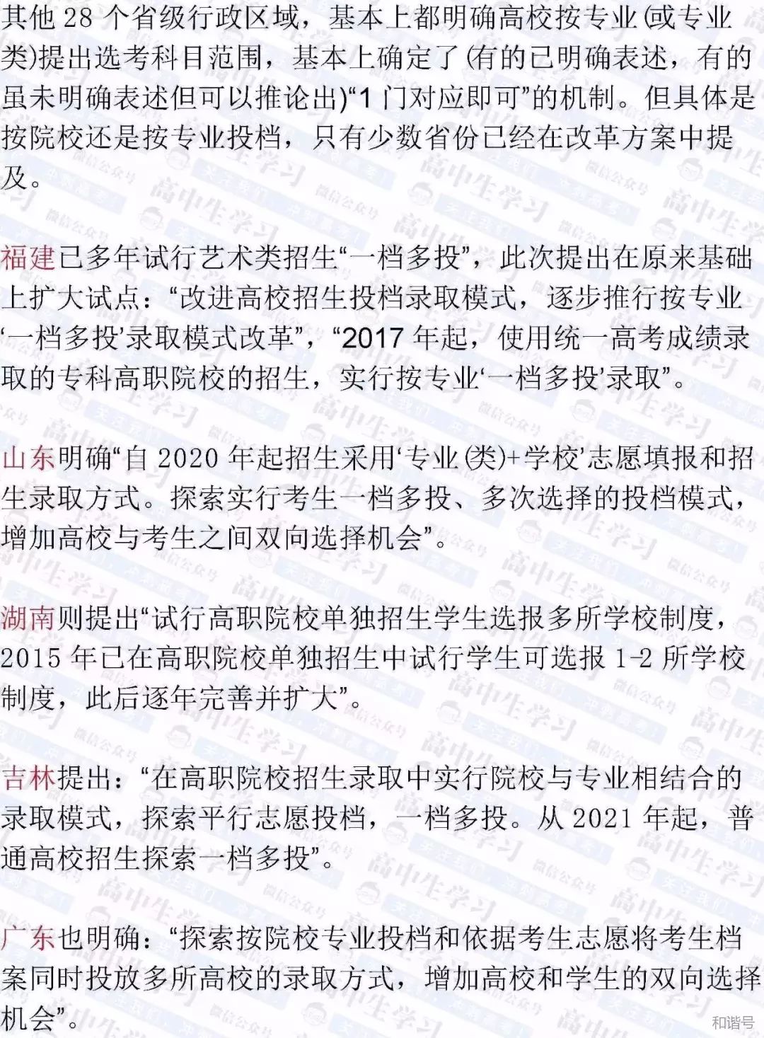 关于一档多投。浙江从2015年开始就在高职提前招生中的15所院校里试行一档多投,考生可以同时报考5所高校,最多可以为5所院校拟录取,最终选择一所院校入学就读,有效扩大了学生的、学校的双向选择权。2016年覆盖到高职提前招生的全部学校。